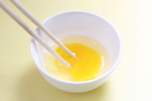 锅中放入50g油(约三汤匙),烧热后,倒入鸡蛋,炒成块捞出沥油;