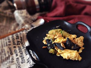 锅中放60g分钟,倒入鸡蛋,根据个人口味加入小炒料包,放醋炒均匀即可。