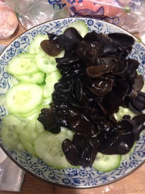 葱姜爆锅,依次下入木耳、黄花,炒一小会儿放入黄瓜片、肉片、鸡蛋,然后加入鸡精,少许酱油,蚝油调味,出锅前加入味精和香油。