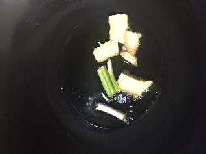 炒锅置火上,放油,烧至5成热,放入姜片、葱爆香。
