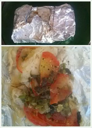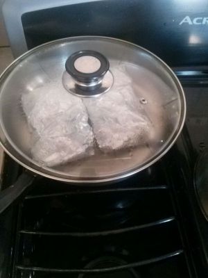 放到平底锅,小火慢煎,直到鱼香味四溢,锡纸有些许焦样,然后再换一面慢煎