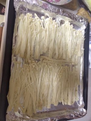 腌制鱼的同时把烤盘铺好金针菇、娃娃菜、木耳、藕片等蔬菜备用,用蔬菜做铺底,可以在烤制过程中更入味。