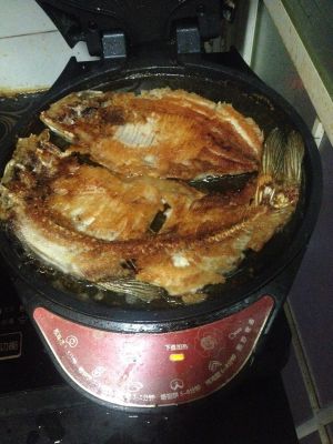 电饼铛加热,下盘放少许油,把鱼放在电饼铛里,鱼表面刷少许油