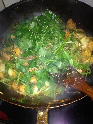 放入香菜,鸡精调味