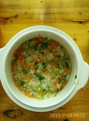 稀饭熟之后,把稀饭和烧好的菜放在一起倒入在锅里煮3--5分钟就ok了