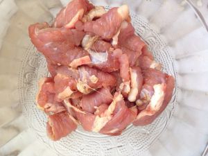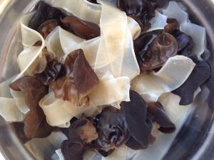 五花肉去皮切薄片,木耳用水泡发,去蒂洗净。