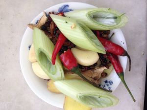 依次放入食材,放了蚝油和味极鲜。一点点醋。辣椒放多少看你能不能吃辣的了