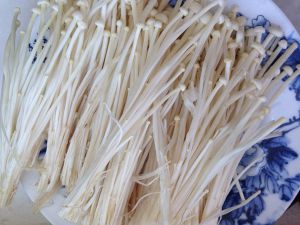 香菇去根洗净撕小块,蘑菇洗净撕成小条,青菜切段。