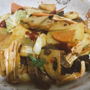 菌类的炸了一下,这个环节省略直接改成后面炒也行,要是平菇就不用炸了