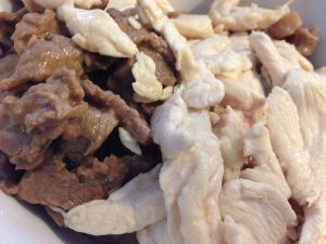 牛肉切片,淀粉,油,腌制十分钟,准备其它食物
