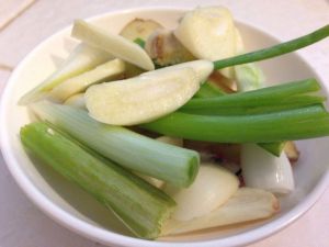 另起锅,倒入适量食用油,煸香葱姜蒜、干辣椒。