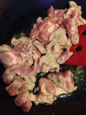 那所有爆过油的肉下锅翻炒,5分钟左右就完全熟了,再下入其他食材,加生抽!