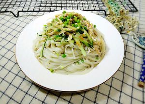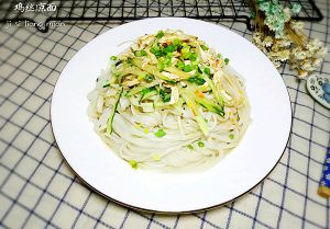 黄瓜切丝备用,也可以用芹菜、豆芽、豇豆,只要你喜欢的都可以。