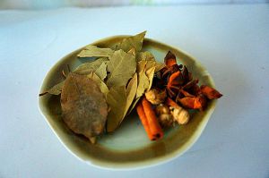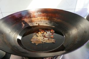 我们来做香油先,这样做出来的更好吃:锅里上少油稍微多一点点,下入少许香料,小火慢慢熬,然后捞起来扔掉不用