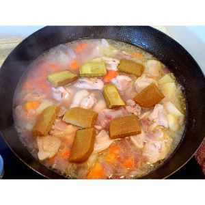 咖喱块我用的是好侍百梦多的日式咖喱块,口感很好,一盒100克,可以烹饪300克肉类,今天我买的鸡肉有500克,所以又增加了半盒咖喱块