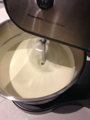 thickened cream加糖打发至有纹路(个人喜好质感扎实的所以没有太稀打了,不需要吉利丁片就可以醇厚结实的口感秘诀在此)