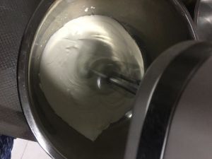蛋黄糊冷却加马思卡彭cheese用刮棒搅拌均匀