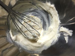 奶油分次加入芝士膏中搅拌均匀成芝士霜。