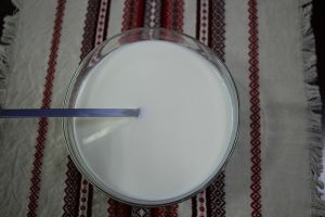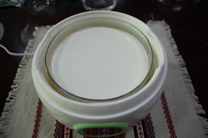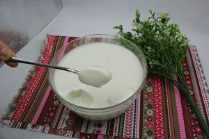 将500ml的牛奶倒入开水烫过晾干的容器中。