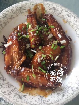 鸡翅洗干净。锅中加水放入鸡翅和适量姜,烧开去腥。烧滚的鸡翅倒入凉水中冲洗干净。晾干水。