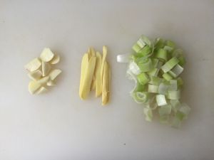 腌制鸡翅同时,将大葱切指段,姜切片,大蒜切小块备用