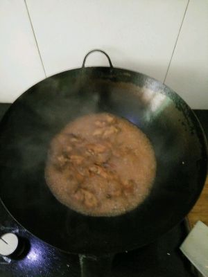 倒入可乐,酱油,再放少许盐搅动一下,大火烧开,然后改小火收汁就成。