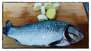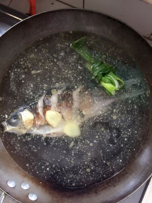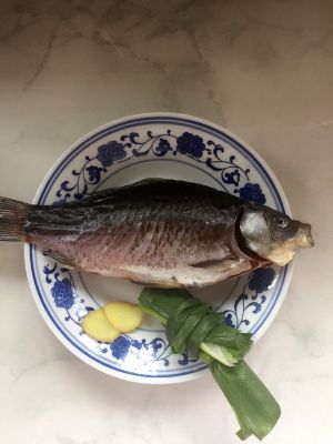 鱼鳞,鱼身清水洗净,沥干水分,鱼头里能抠下来的都不要,葱,姜少量。