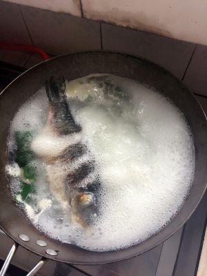水烧热就可以放入鲫鱼,快起锅前半小时放豆腐。如果喜欢嫩豆腐起锅前放就行。