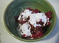 红黄小土豆在水中煮五分钟,取出剥皮,切成小丁。