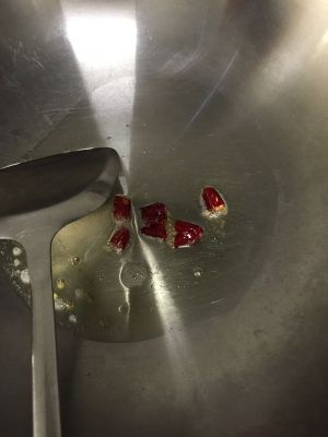 加入土豆丝 (一定要把水空干净),土豆丝放进去 翻炒两分钟 放白醋(粗放的早,土豆丝比较脆)翻炒几分钟 放适量的的盐 翻炒 两分钟 散上一点 绿色的 小菜点缀一下 会更有食欲…