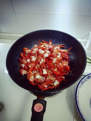 小龙虾烹饪步骤 1.龙虾下锅,油炸 2.加入白酒,和白醋 3.添加,姜丝,蒜泥,小米椒或者干辣椒,再加盐和少量白糖提鲜,加入适量纯净水,焖煮(记得肉类,咱多煮一会,放心,有白酒,肉不会容易老去)