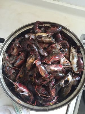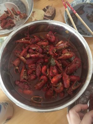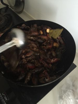 准备好蒜瓣,姜片,辣椒,麻椒,花椒,香叶,桂皮,八角,锅中放油,加入所有香料炒香,放入小龙虾,加料酒,糖,盐,生抽爆炒至小龙虾变色,加水,煮15分钟,关火!