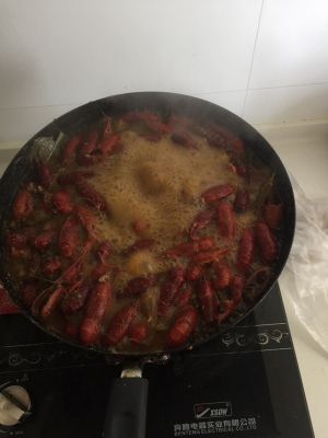 放入糍粑辣炒熟,适当加盐,再加入小龙虾、甜酒酿和耗油翻炒,再加适量清水(没过小龙虾即可)小火煮20分钟。