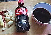 准备好可乐、蒜粒、干辣椒、生姜(切片)、酱油