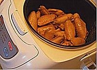 到30分钟时再次打开盖子,用筷子插入一块鸡翅中,若发现筷子很容易就能插进去的话,说明鸡翅已经好了可以吃了。反之就盖上盖子再煮一会儿