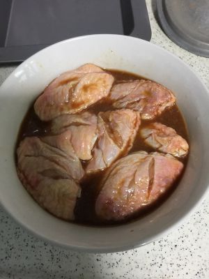 把鸡翅洗净,改刀,分别放入盐,孜然淹10分钟