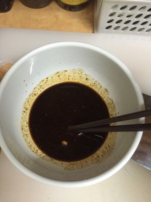 将生抽、老抽、糖、醋、淀粉、五香粉和两勺水混合搅拌在一起~