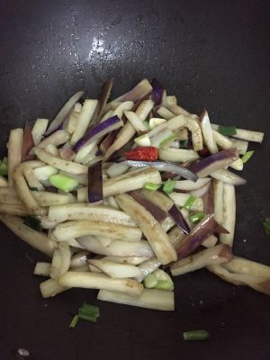 放茄子翻炒,还可以放别的菜,等茄子变色即可出锅