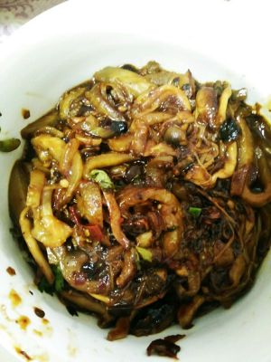 然后加碗汁(生抽2、老抽一点点,糖2,白醋3料酒1生粉少许鸡精味精各少许有条件的可以滴几滴香油)