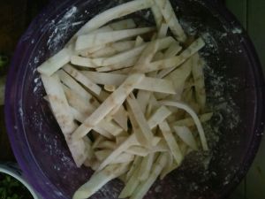 生抽、香醋、盐、白糖,按个人口味调匀(建议醋放少点),兑少量水,淀粉勾兑,搅匀备用