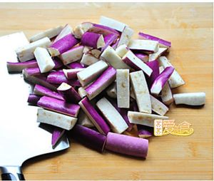 将茄子切成自己喜欢大小的条条。