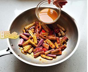 倒入炸好的茄子翻炒几下,加入鱼香酱汁,略收汁出锅即可。(时间不可过长)