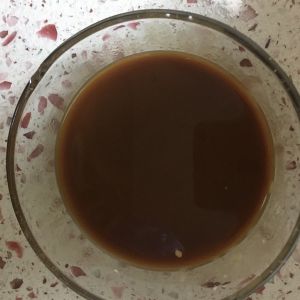 取一只碗调酱汁,醋2大勺、酱油1大勺、糖15克、清水2大勺、淀粉少许,加入清水调好鱼香酱汁备用。