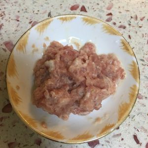 肉切肉末,加淀粉,少量油抓匀。