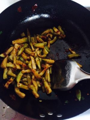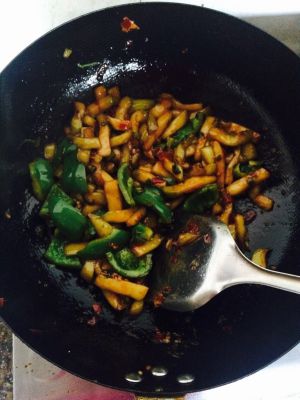 加入青椒继续翻炒,觉得差不多就可以出锅了!