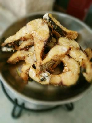 锅中留少许炸油,加入茴香花椒,葱姜蒜末爆香(葱皮干白,蒜末泛黄,油有葱蒜香)。倒入5中酱汁翻炒起泡加开水,放鱼块大火煮至汤汁变稠,加茄子焖熟,酌情加盐调味。出锅前加生蒜末提味。