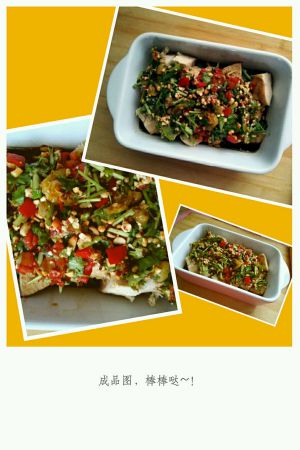 一头蒜切成蒜末,热油倒入三分二蒜末翻炒出香味,加入1勺姜末,1勺辣椒面,1勺辣椒粉,1勺花生碎翻炒出红油,再加入芝麻和剩下的蒜末炒匀盛出。加2勺陈醋,4勺生抽,半勺老抽,1勺蚝油,半勺糖,4勺水调匀