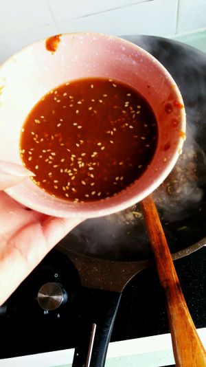 再加一勺糖,两勺醋,少许芝麻水淀粉调个汁(不爱吃辣椒酱豆瓣酱可用酱油代替)