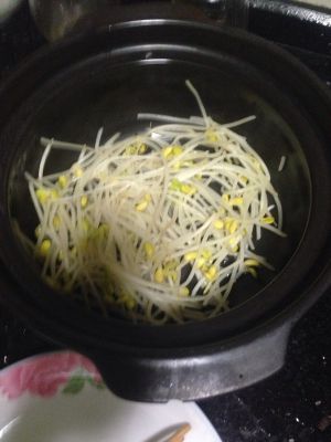 豆芽开水烫熟后捞出来铺在容器底