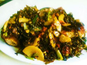 把芝麻放面上,辣椒,花椒。加油爆炒直接倒在鱼上面!